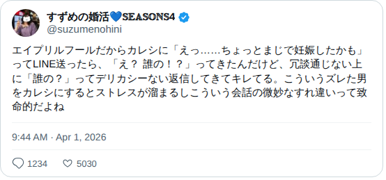 すずめの婚活💙𝕊𝔼𝔸𝕊𝕆ℕ𝕊4 (@suzumenohini)