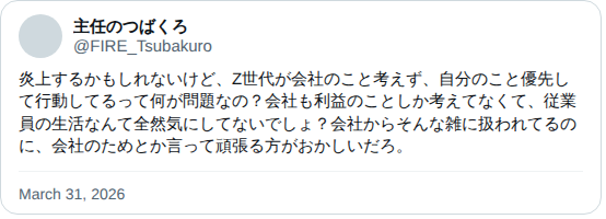 This page presents a post questioning why Z-generation workers prioritizing themselves over their company is p...