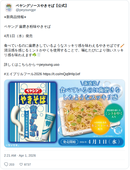 ペヤングソースやきそば【公式】 (@peyoungpr)