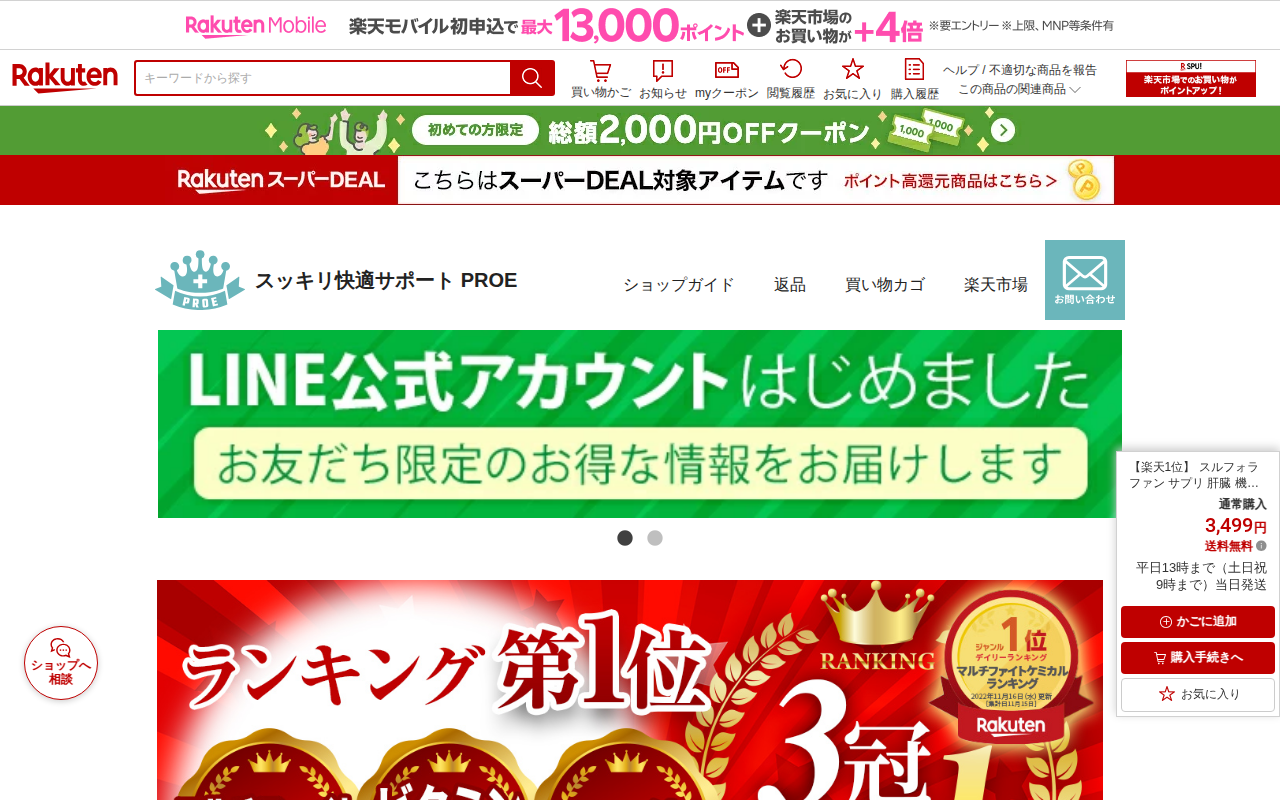 このページは、楽天市場で販売されているスルフォラファンサプリメント「スルフォ30」の商品ページです。ブロッコリースプラウト由来のスルフォラファンを含む機能性表示食品で、肝機能が気になる方向けの肝臓ケアサプリです。通常購入...