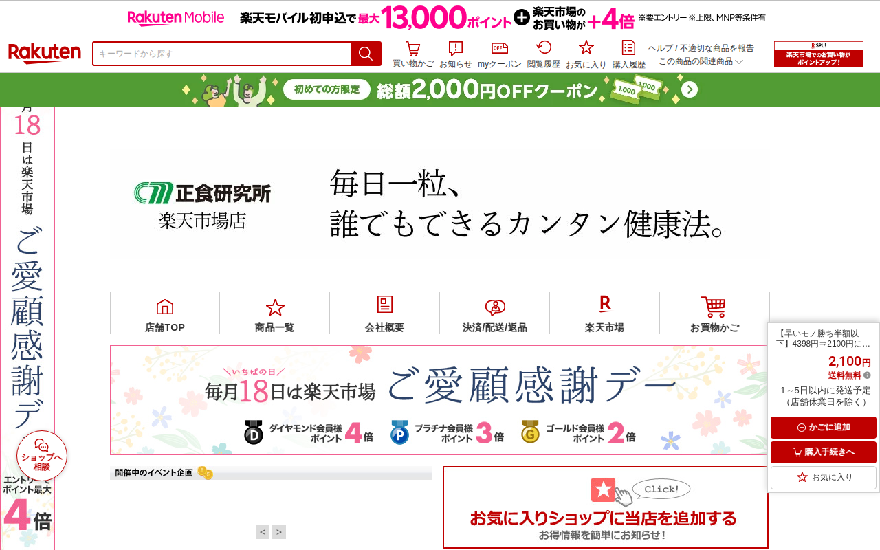 このページは、楽天市場で販売されている「にんにくの精」のセール商品を紹介しています。通常4398円の31粒入り3袋セットが2100円に値下げされています。にんにく卵黄のみを使用した無添加サプリメントで、疲労回復、滋養強壮...