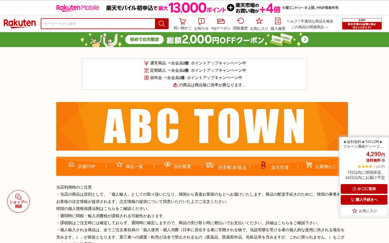 このページは、韓国発のTAYLOR製プルーン濃縮ディープウォーター180ml×6本の販売ページです。西洋プルーンを乾燥させた製品で、食物繊維、鉄分、カリウムなどの栄養が豊富に含まれており、便秘解消や腸内環境改善に役立つと...