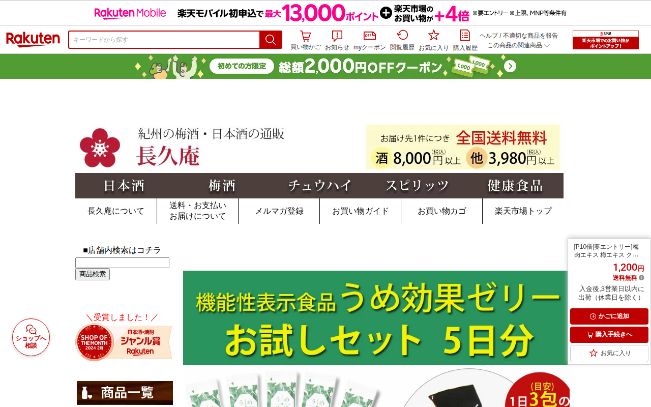 このページは、楽天市場で販売されている「うめ効果ゼリー」の商品紹介ページです。梅エキスを使用した機能性表示食品で、クエン酸を含み、肥満気味の方の高めの血圧を下げる機能が報告されています。江戸時代から日本の伝統的健康食品で...
