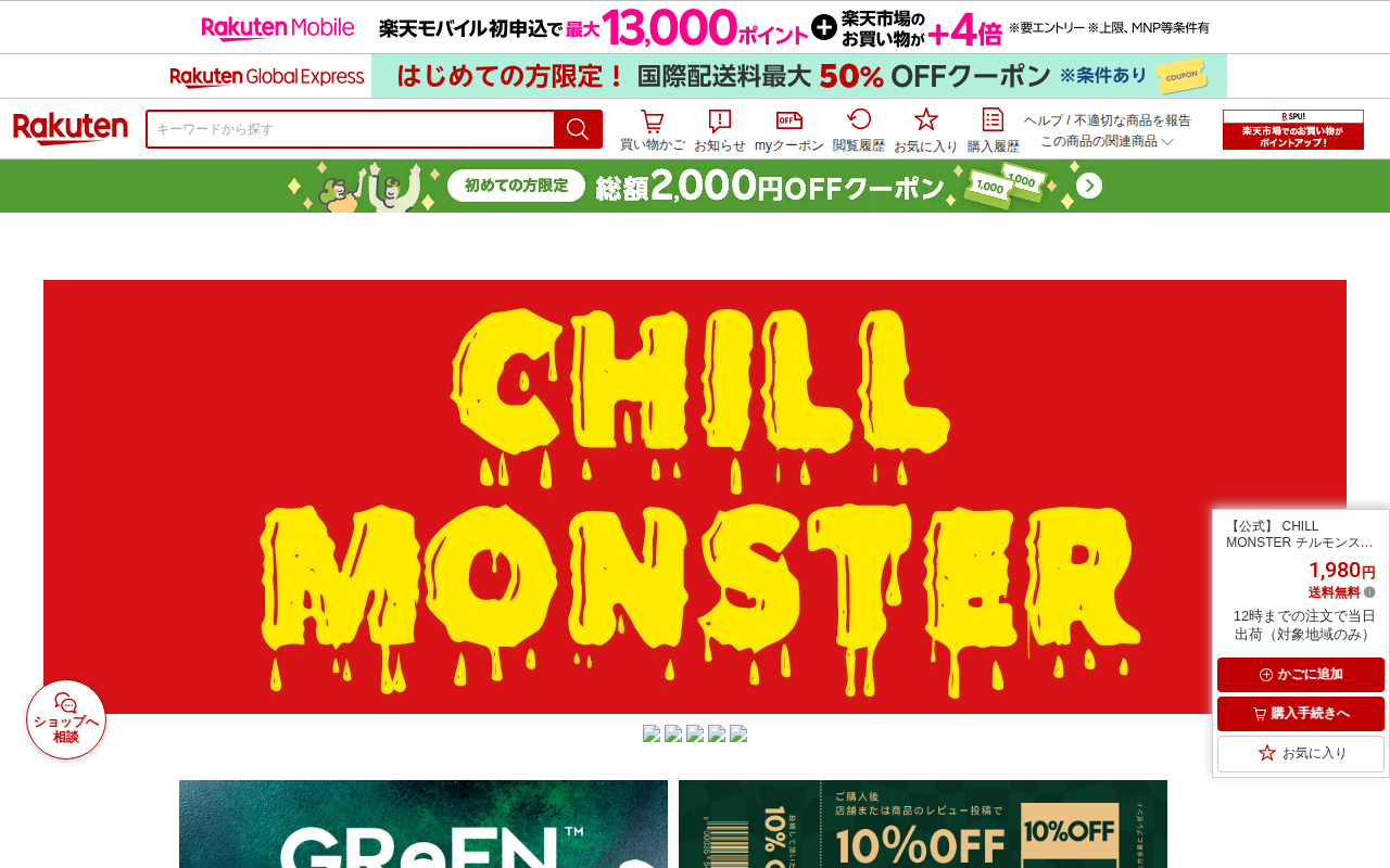 このページは、楽天市場で販売されているCHILL MONSTERのCBNクッキー商品です。アメリカンチョコチップ味(CBN420mg配合)とメイプルシロップ+くるみ味(CBN300mg配合)の2種類があります。価格は1,...
