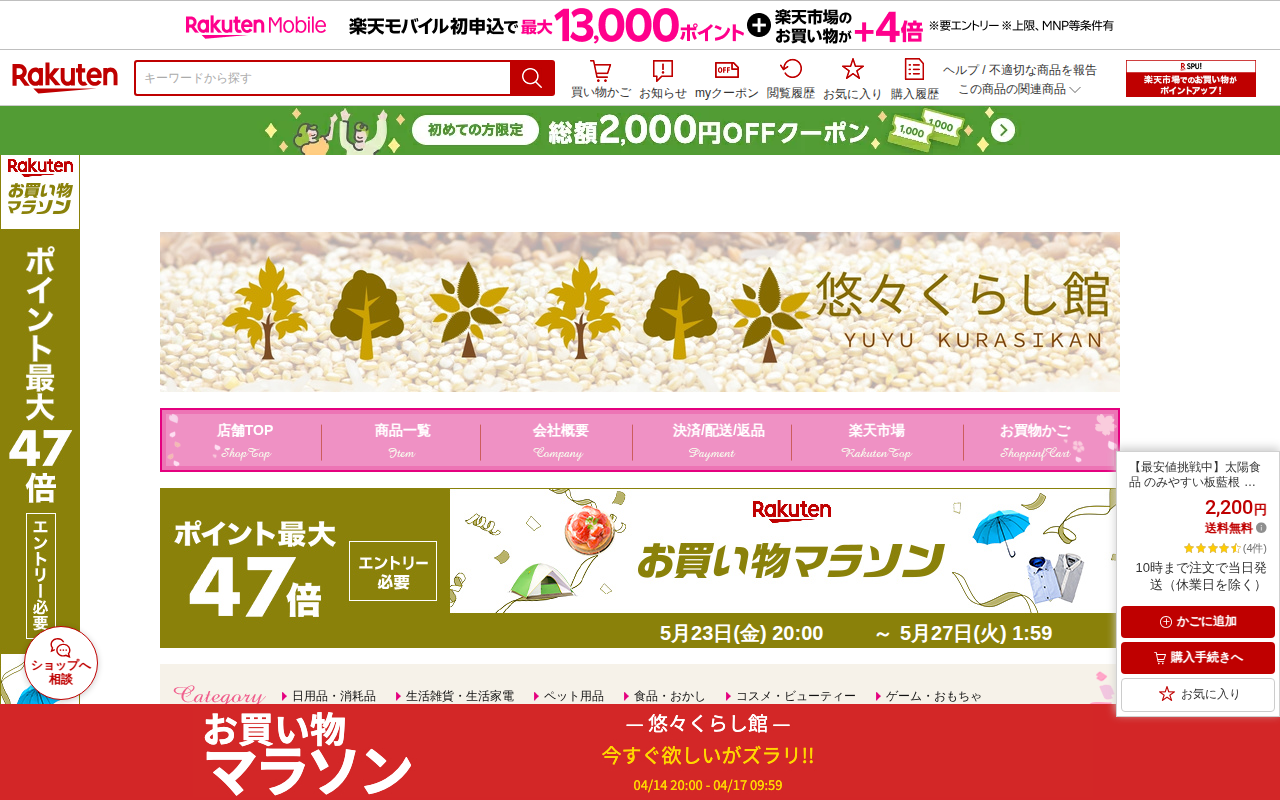 このページは、楽天市場で販売されている太陽食品の「のみやすい板藍根粉末」の商品情報です。1g×36包入りで2,200円、送料無料です。板藍根(バンランコン)に甘草や生姜、各種ビタミンを配合した健康食品で、眠くなる成分は含...