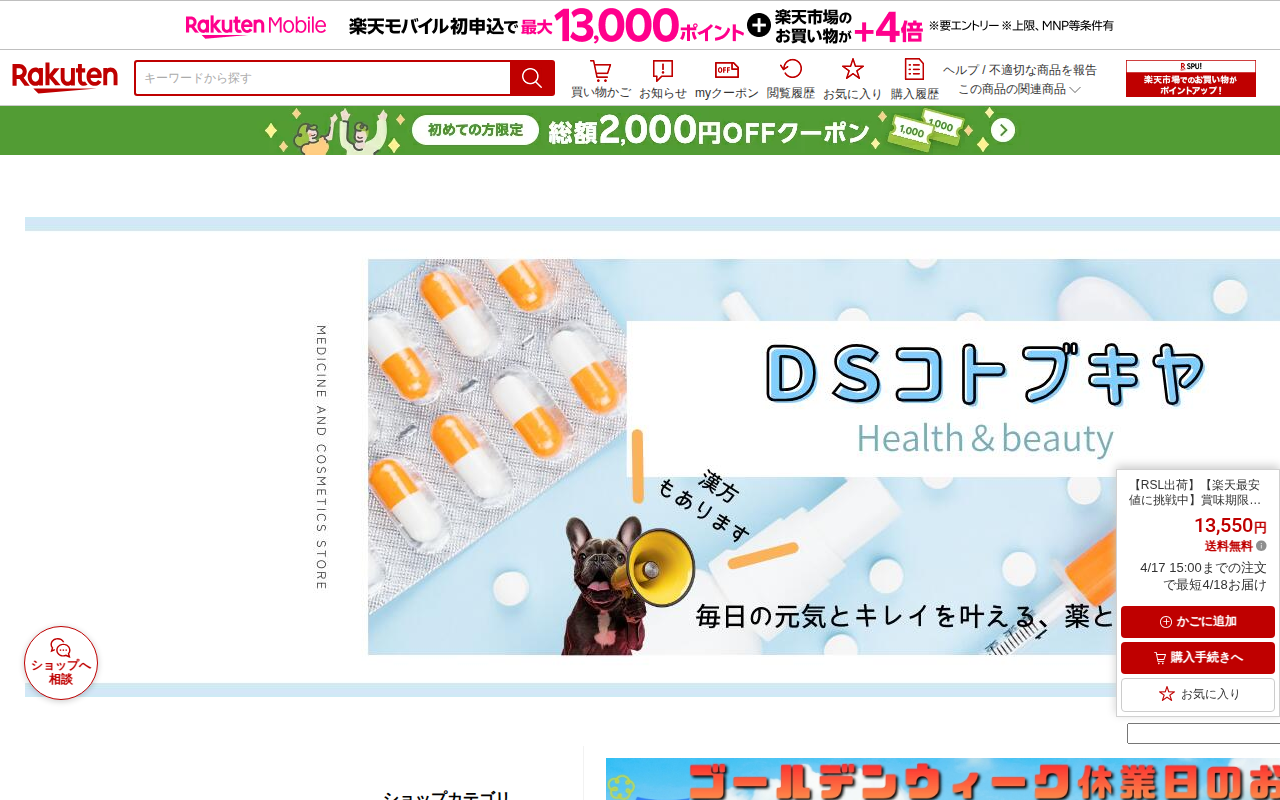 このページは、楽天市場で販売されている小林製薬のサプリメント「さかなっとう」の商品ページです。ナットウキナーゼ、EPA、DHAの3つの成分を配合した栄養補助食品で、30粒×3個セットが3,871円で販売されています。マラ...