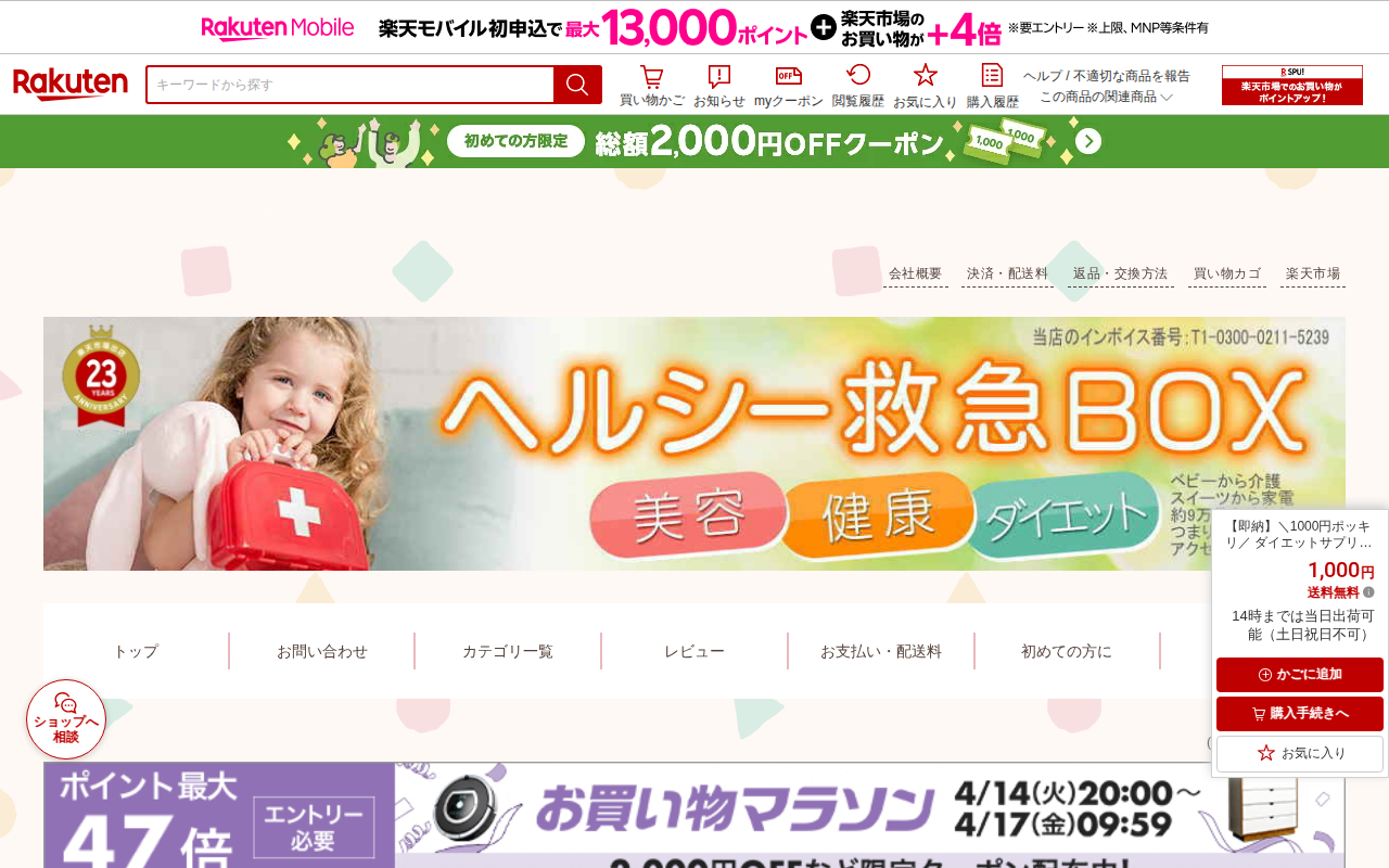 このページは、楽天市場で販売されている酵素サプリメント商品の紹介ページです。1,000円で240粒(約4ヵ月分)のダイエット酵素サプリが販売されており、送料無料で14時までに注文すれば当日出荷可能です。水溶性食物繊維やオ...