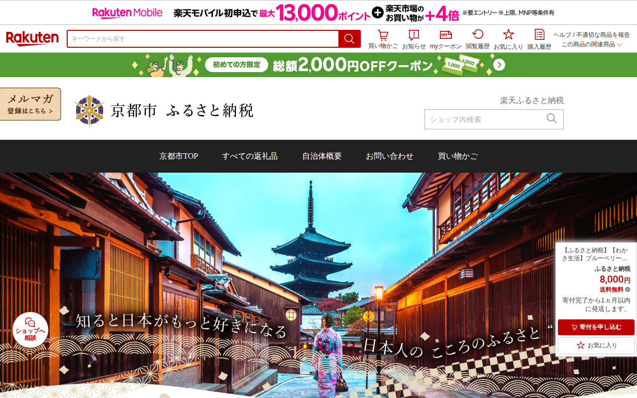 このページは、京都府京都市へのふるさと納税で、わかさ生活のブルーベリーアイサプリメント1袋を返礼品として受け取れる商品紹介ページです。寄付金額は8,000円で送料無料、寄付完了から1ヵ月以内に発送されます。寄付金は文化首...