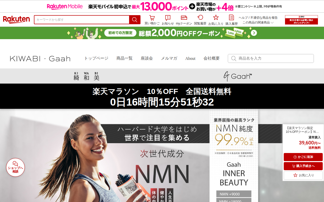 【楽天市場】【楽天マラソン限定10%OFFクーポン】NMNサプリ 医療従事者が推奨するNMNサプリ No.1 INNER BEAUTY nmn サプリ サプリメント 国産 エイジングケア スキンケア 女性 男性 健康維持 健康食品 ギフト 誕生日プレゼント ニコチンアミドモノヌクレオチド| 送料無料:綺和美