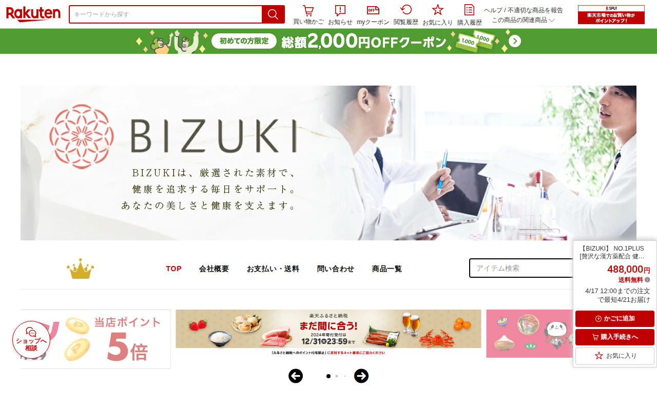 このページは、楽天市場で販売されているBIZUKI製の健康食品「NO.1PLUS」の商品ページです。初鹿の血、霊芝、紅参、マカなどの厳選された天然成分を配合した男性向けサプリメントで、活力をサポートします。日本製でGMP...