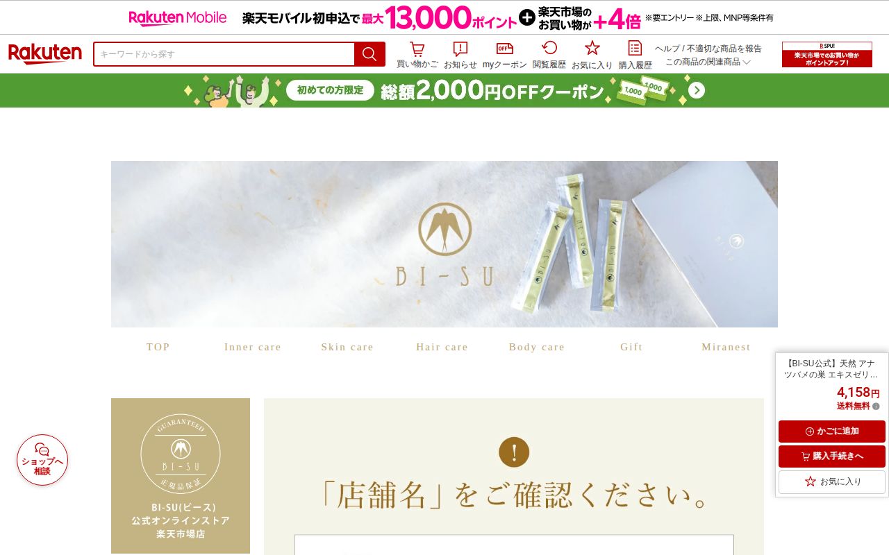このページは、楽天市場で販売されているBI-SU公式の天然アナツバメの巣エキスゼリースティック(クランベリー味、7本入り)の商品ページです。価格は4,158円で送料無料。クランベリーのポリフェノールやキナ酸などの栄養が摂...