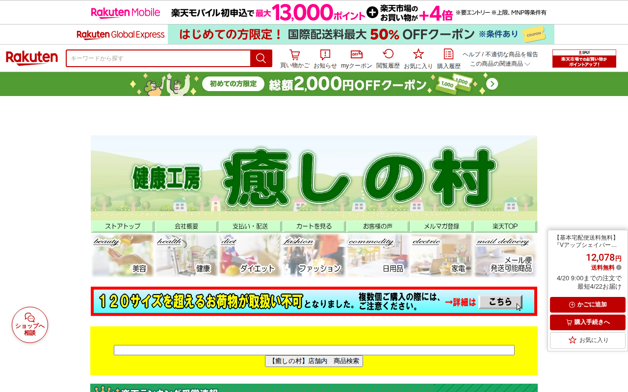 【楽天市場】エラー