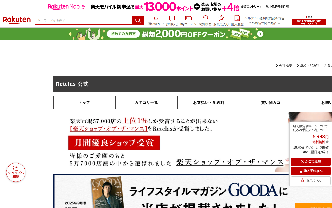 このページは、楽天市場で販売されているEMS腹筋ベルトの商品ページです。2025年強化版で、25段階の強度調節と8種類のモードを搭載しており、ジェル不要のベルト式設計が特徴です。12枚の伝導布、USB充電式、液晶表示付き...