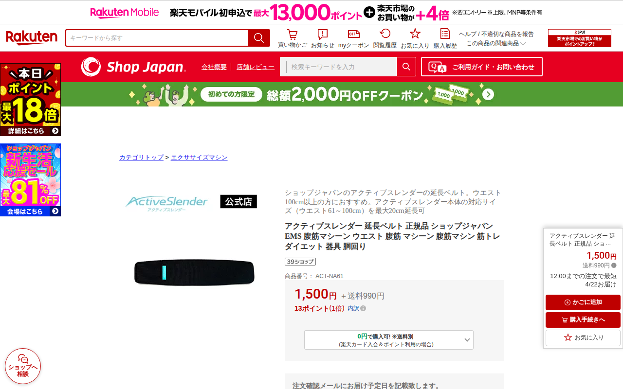 【楽天市場】アクティブスレンダー 延長ベルト 正規品 ショップジャパンEMS 腹筋マシーン ウエスト 腹筋 マシーン 腹筋マシン 筋トレ ダイエット 器具 胴回り:ショップジャパン 楽天市場店