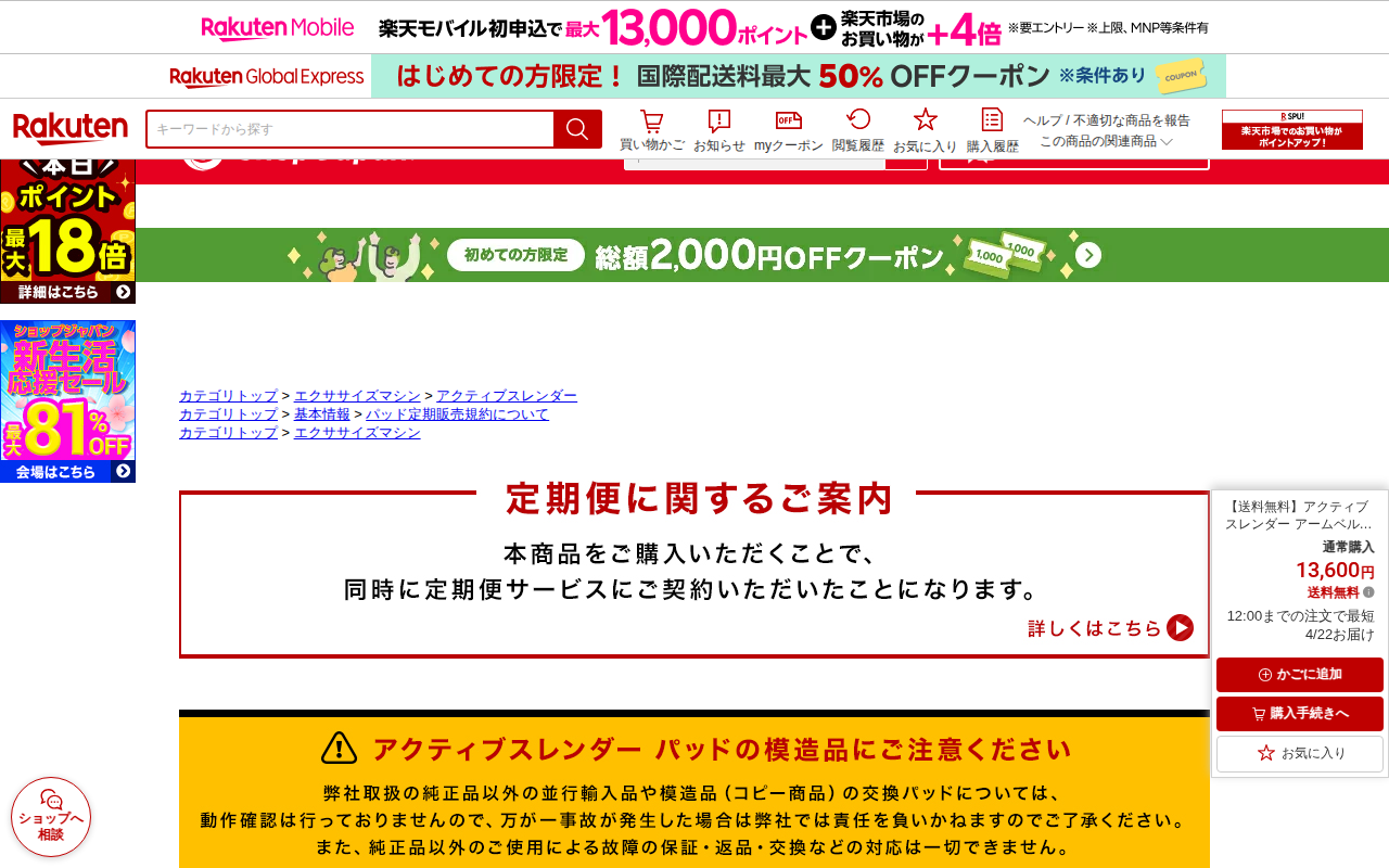 【楽天市場】アクティブスレンダー 交換用パッド 送料無料 正規品 ショップジャパンEMS 腹筋マシーン 腹筋 マシーン 腹筋マシン 筋トレ 器具:ショップジャパン 楽天市場店