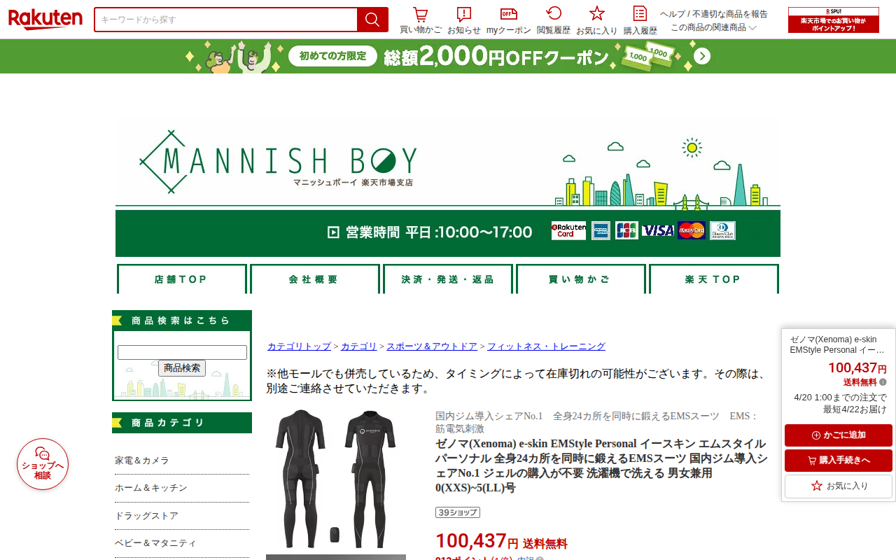 【楽天市場】ゼノマ(Xenoma) e-skin EMStyle Personal イースキン エムスタイル パーソナル 全身24カ所を同時に鍛えるEMSスーツ 国内ジム導入シェアNo.1 ジェルの購入が不要 洗濯機で洗える 男女兼用0(XXS)~5(LL)号:マニッシュボーイ