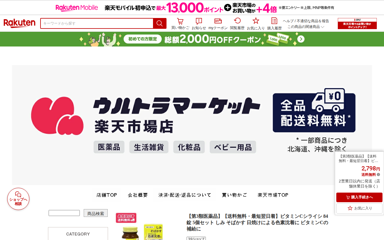 このページは、楽天市場で販売されているビタミンCシライシ84錠5個セットの商品情報です。第3類医薬品で、送料無料・最短翌日着、価格は2,798円です。シミ・ソバカス、日焼けによる色素沈着、歯ぐき出血などに効果があり、ビタ...