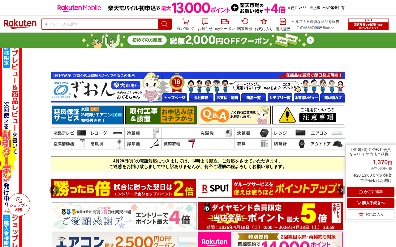 このページは、楽天の商品ページへのアクセスが集中している状況を伝えています。サーバへのアクセス集中により、ページの閲覧が困難になっているため、ユーザーに対して時間をおいた後に再度アクセスするよう案内しています。...