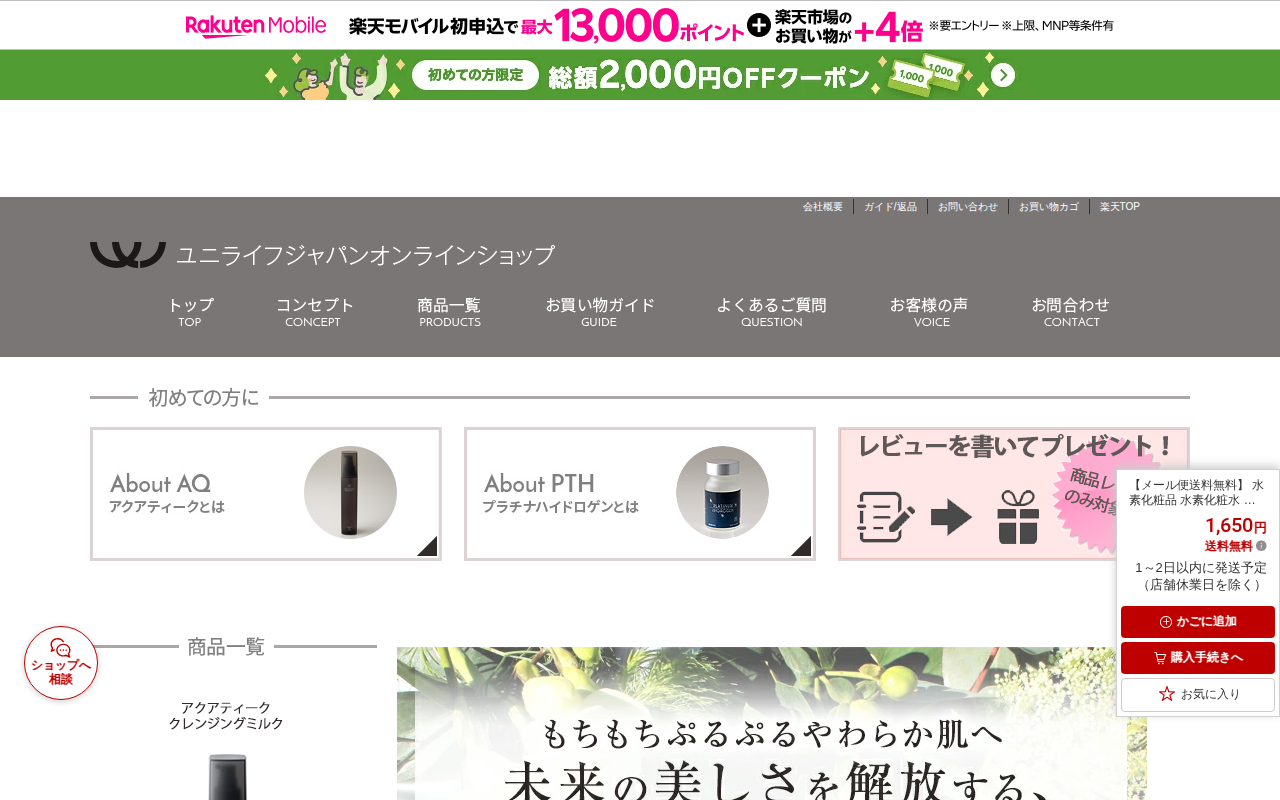 このページは、楽天市場で販売されているEICHI Basic Plusセットの商品ページです。水素イオントナー(化粧水)80mlとグロードロップス(水素発生剤)のセットで、さらにドロップスがもう1つ付属しています。価格は...
