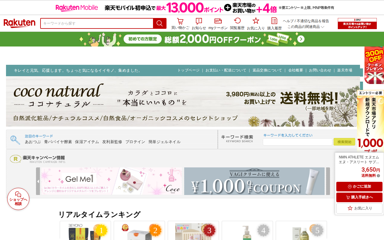 このページは、楽天市場で販売されているNMN ATHLETEサプリメント20粒の商品ページです。NMNはニコチンアミドモノヌクレオチドで、新しいエイジングケア成分として注目されています。4種類の製品が提供されており、TW...