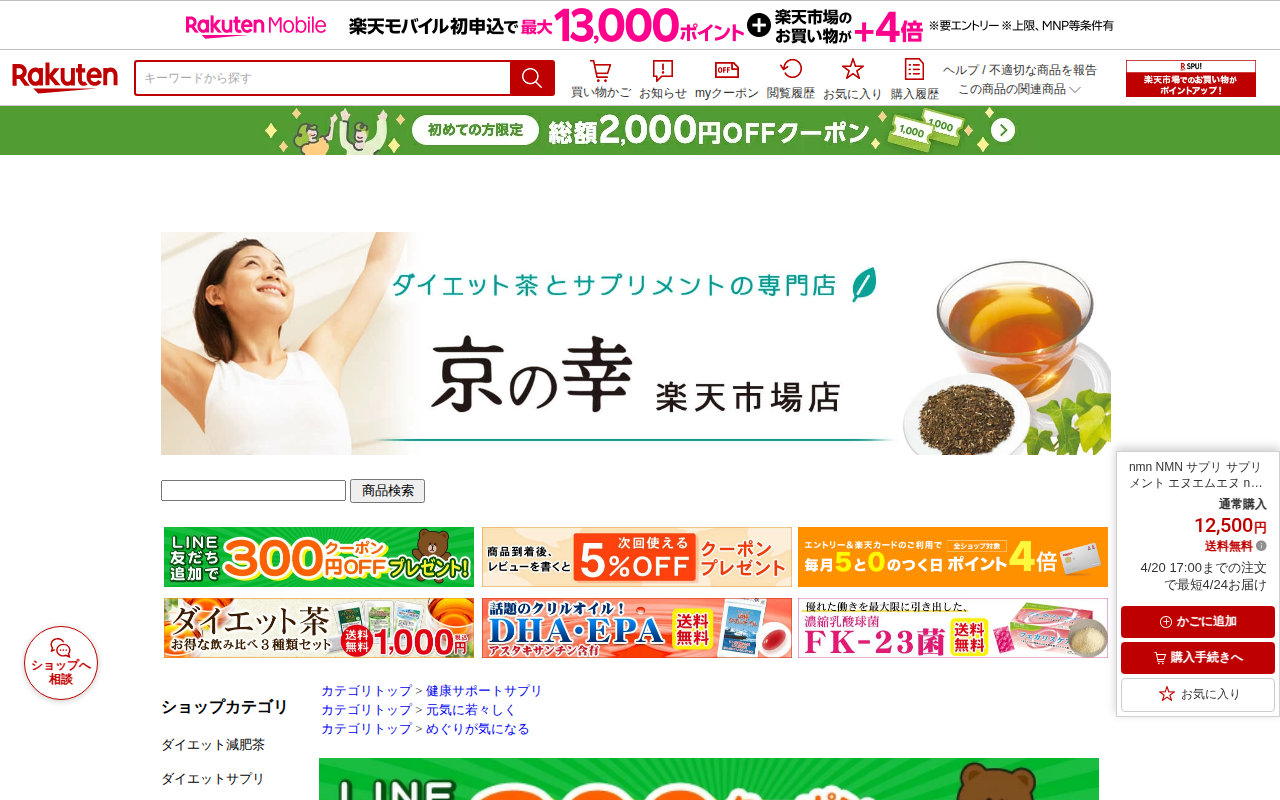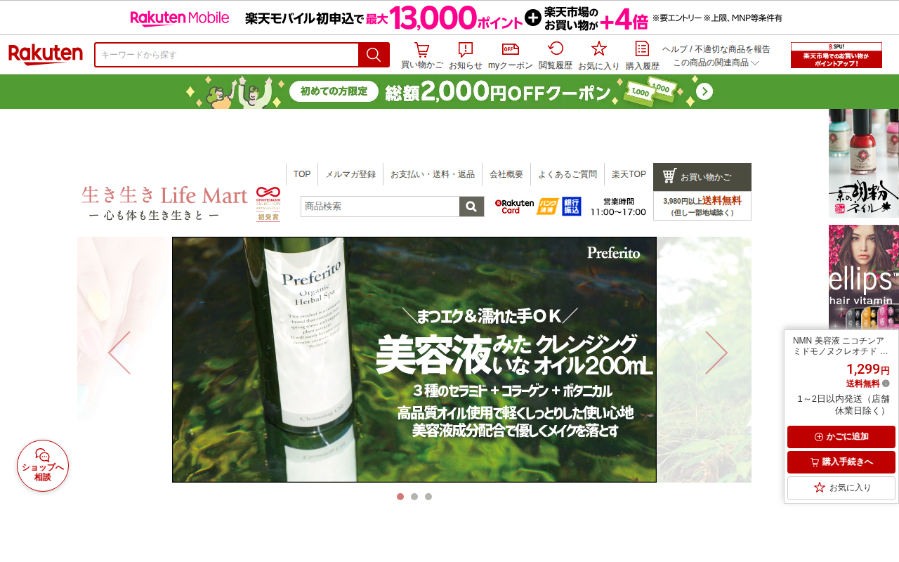 このページは、楽天市場で販売されているNMNサプリメントの商品ページです。40,000mg配合で業界トップクラスの含有量を誇り、純度99.9%以上の国内製造品です。累計1,600万袋の販売実績があり、コラーゲン、ヒアルロ...