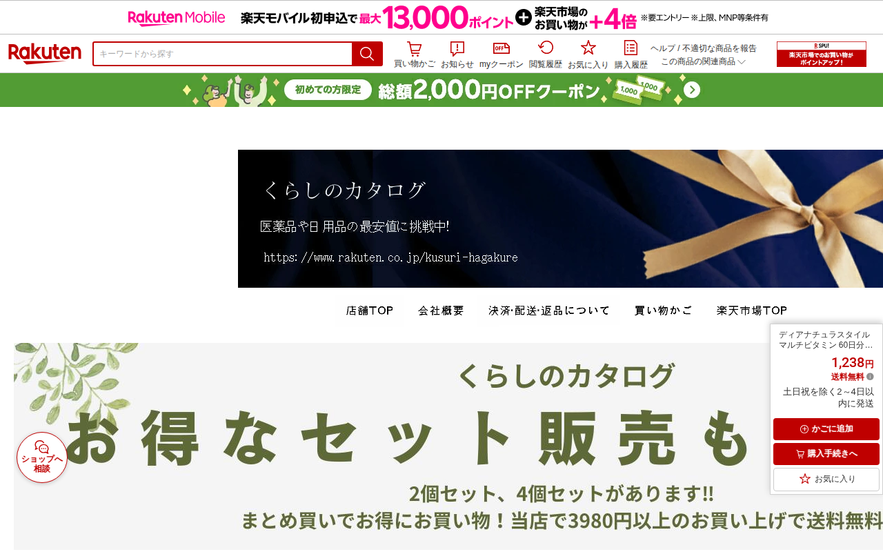 このページは、DHCのマルチビタミンサプリメント60日分(60粒)×3個セットの楽天市場での販売ページです。1粒で13種類のビタミンを効率的に摂取でき、野菜不足や外食が多い方、不規則な生活の方に推奨されています。価格は2...