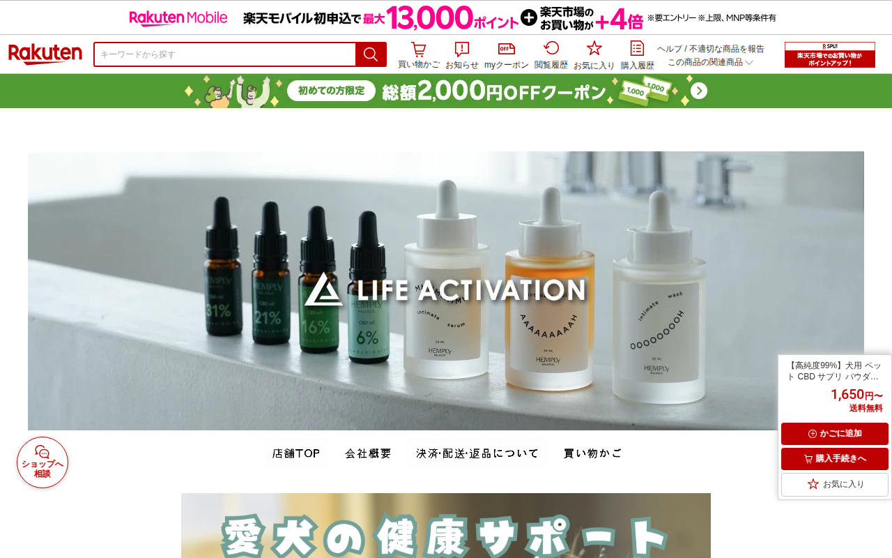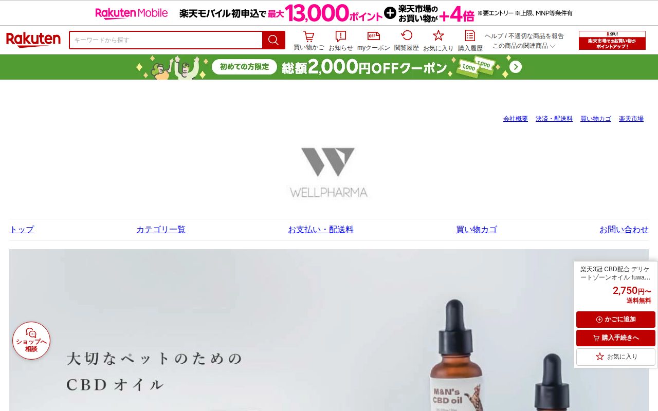 このページは、楽天市場で販売されている「fuwari」というデリケートゾーンオイルの商品ページです。CBD1000mg配合の140mL大容量オイルで、価格は3,680円から8,964円。100%天然由来成分で、セサミオイ...