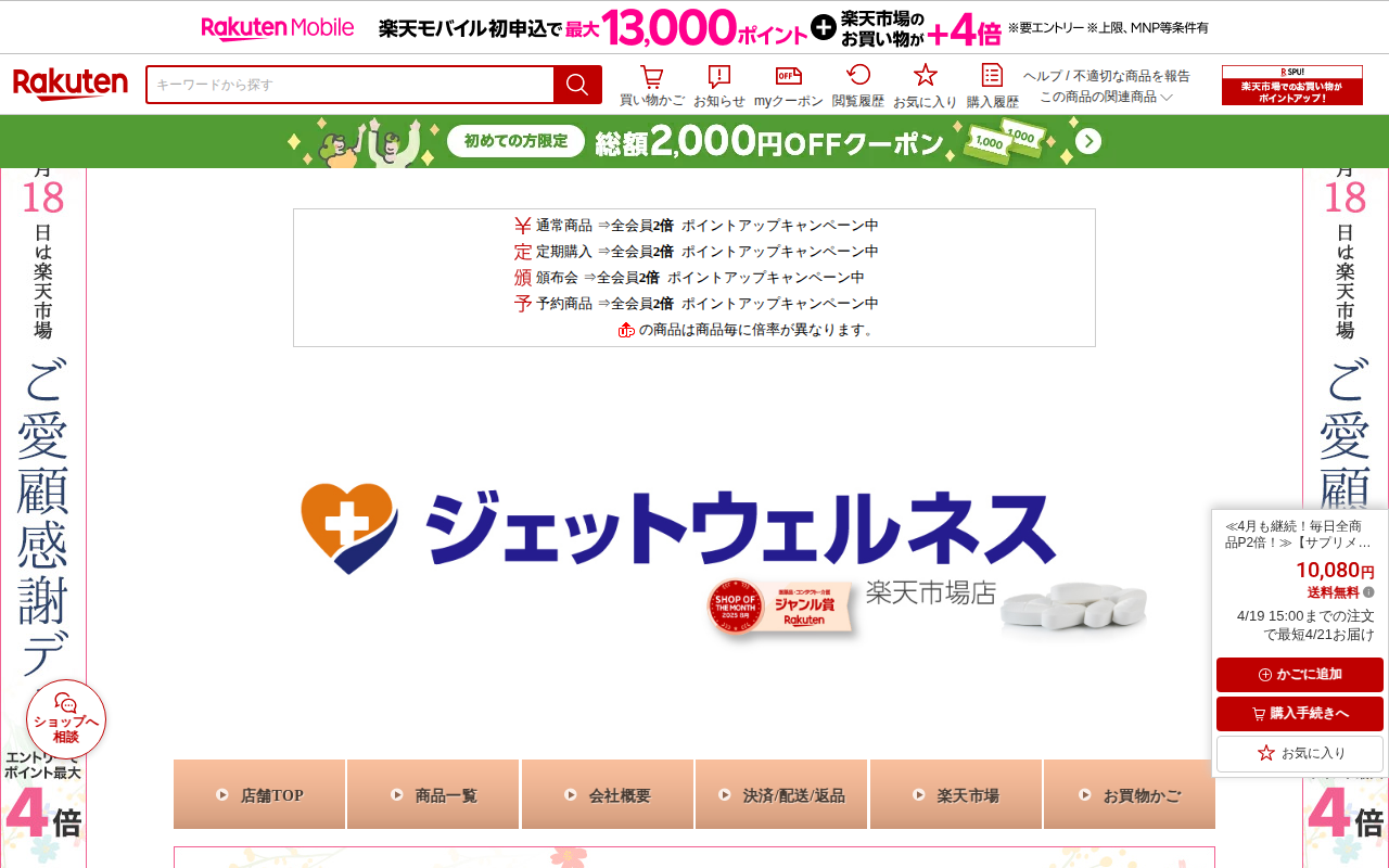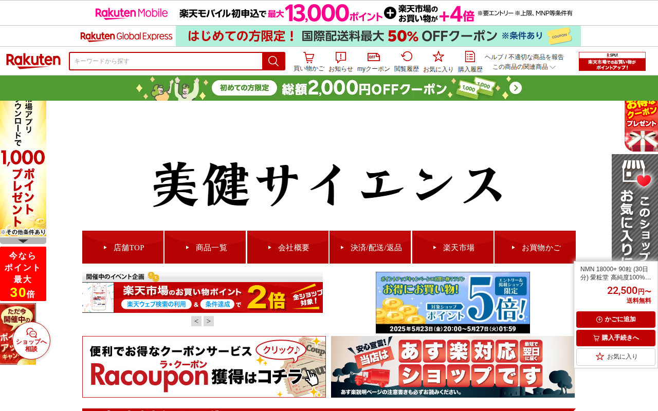 このページは、楽天市場で販売されている「NMN 18000+」サプリメントの商品ページです。高純度100%、国内製造の愛粧堂製で、NMN18000mg配合に加え、植物プラセンタ、馬プラセンタ、ヒアルロン酸、CoQ10を含...