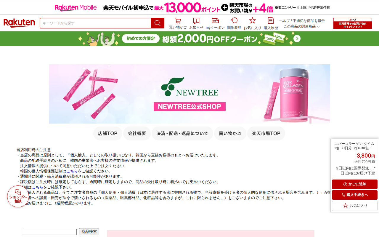 【楽天市場】エバーコラーゲン タイム 1個 30日分 3g X 30包 コラーゲン集中ケア コラーゲン 低分子コラーゲンペプチド 高純度 インナービューティー スキンケア サプリ:NEWTREE公式SHOP
