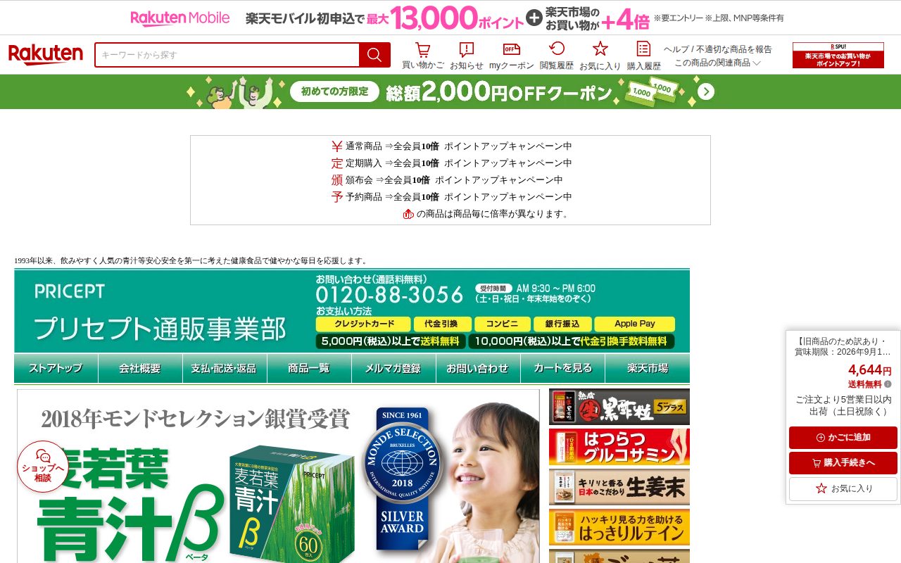 このページは、楽天市場で販売されているグルコサミンサプリメント「はつらつグルコサミン」の商品ページです。旧商品のため訳あり商品として、賞味期限2026年9月12日で通常価格11,610円から4,644円に割引されています...