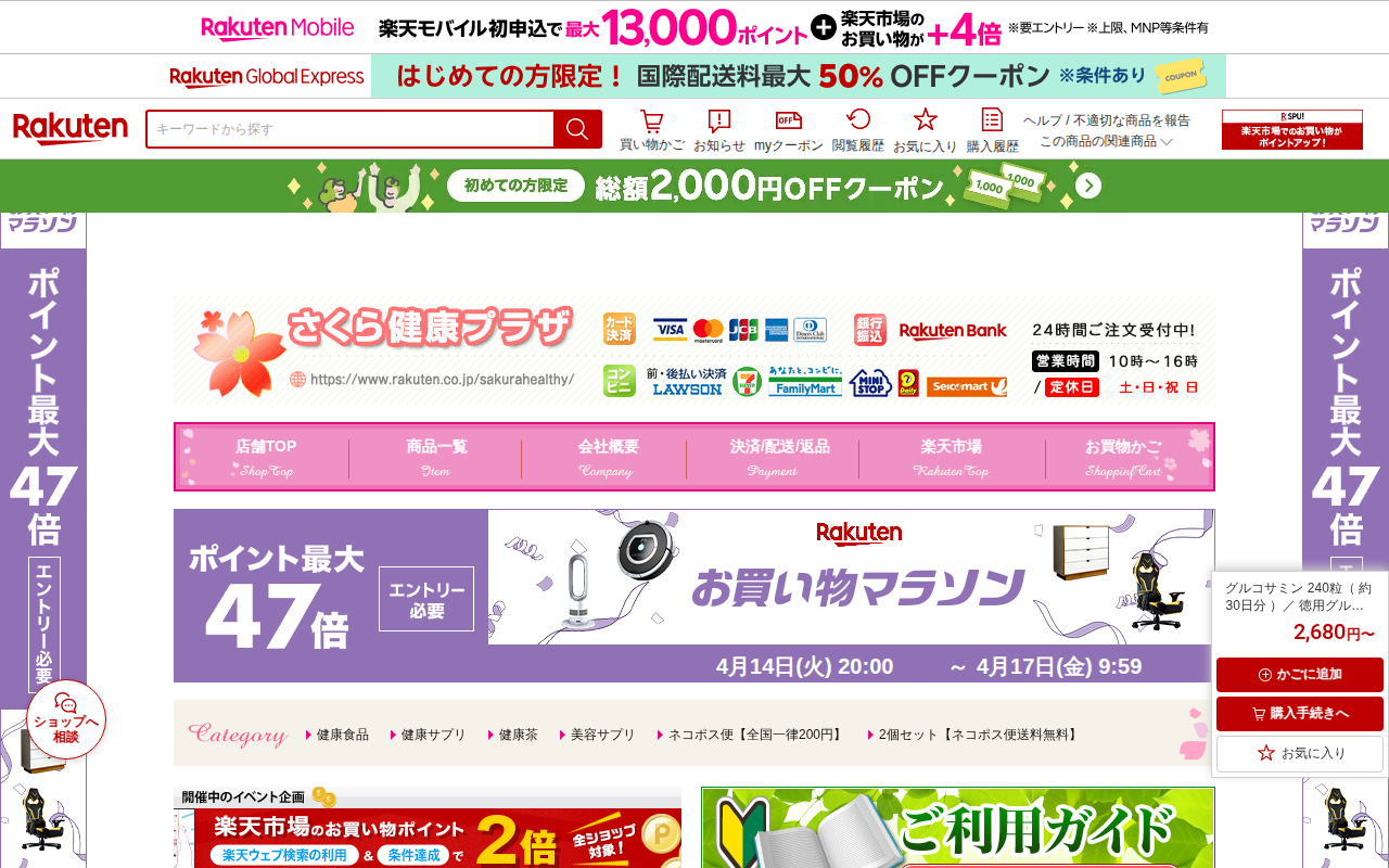 【楽天市場】グルコサミン 240粒( 約30日分 )/ 徳用グルコサミン 800粒( 約100日分 )【 タケイ 】:さくら健康プラザ