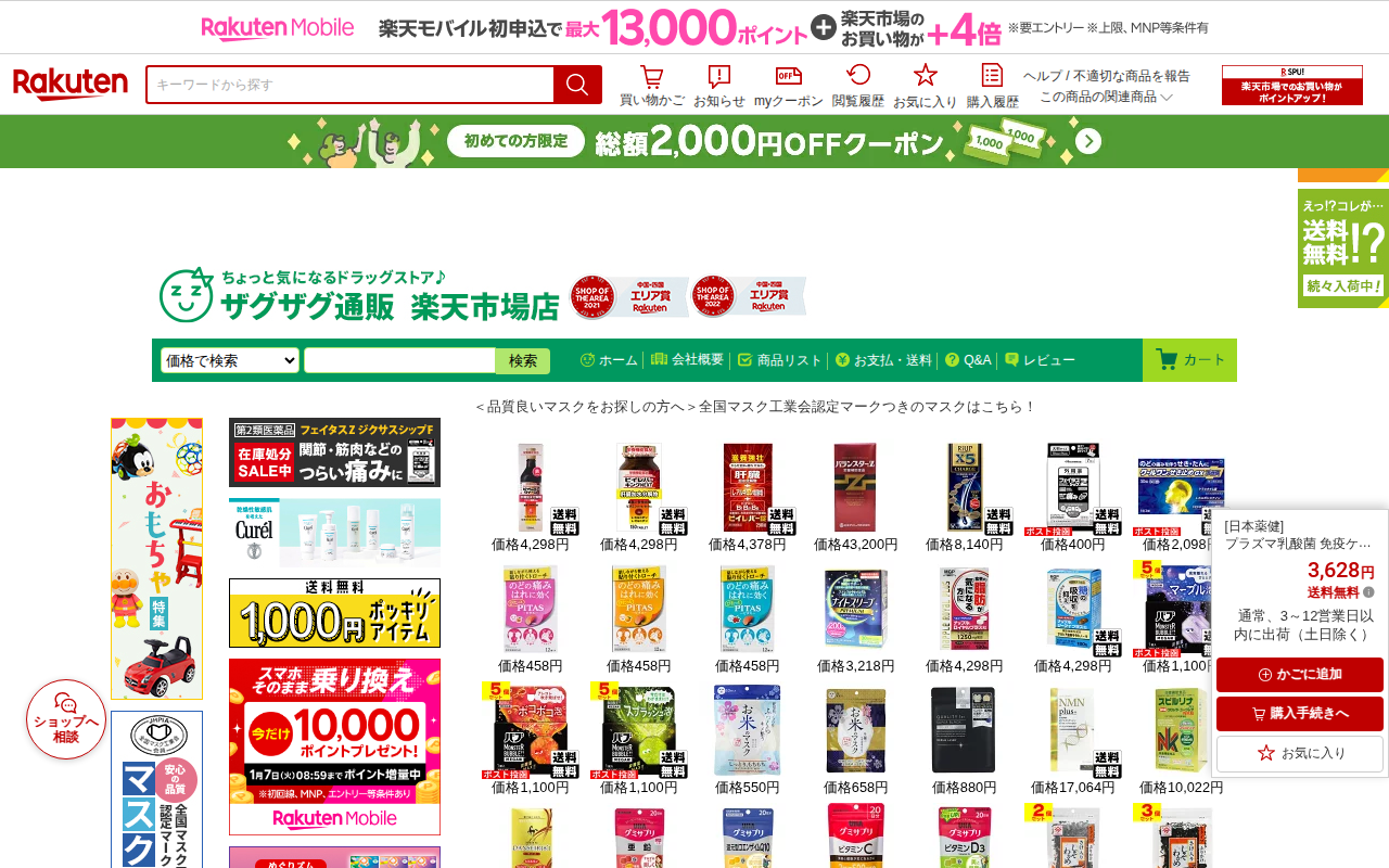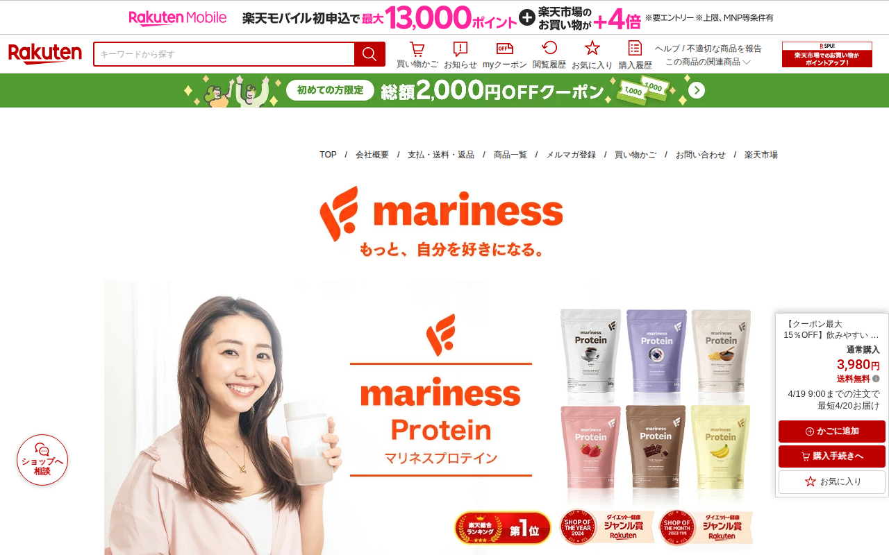 このページは、楽天市場で販売されているグルコサミン配合のサプリメント商品の紹介ページです。プロテオグリカン、非変性2型コラーゲン、コンドロイチンなど複数の軟骨由来成分を配合した国内製造製品で、年齢を重ねた健康維持をサポー...