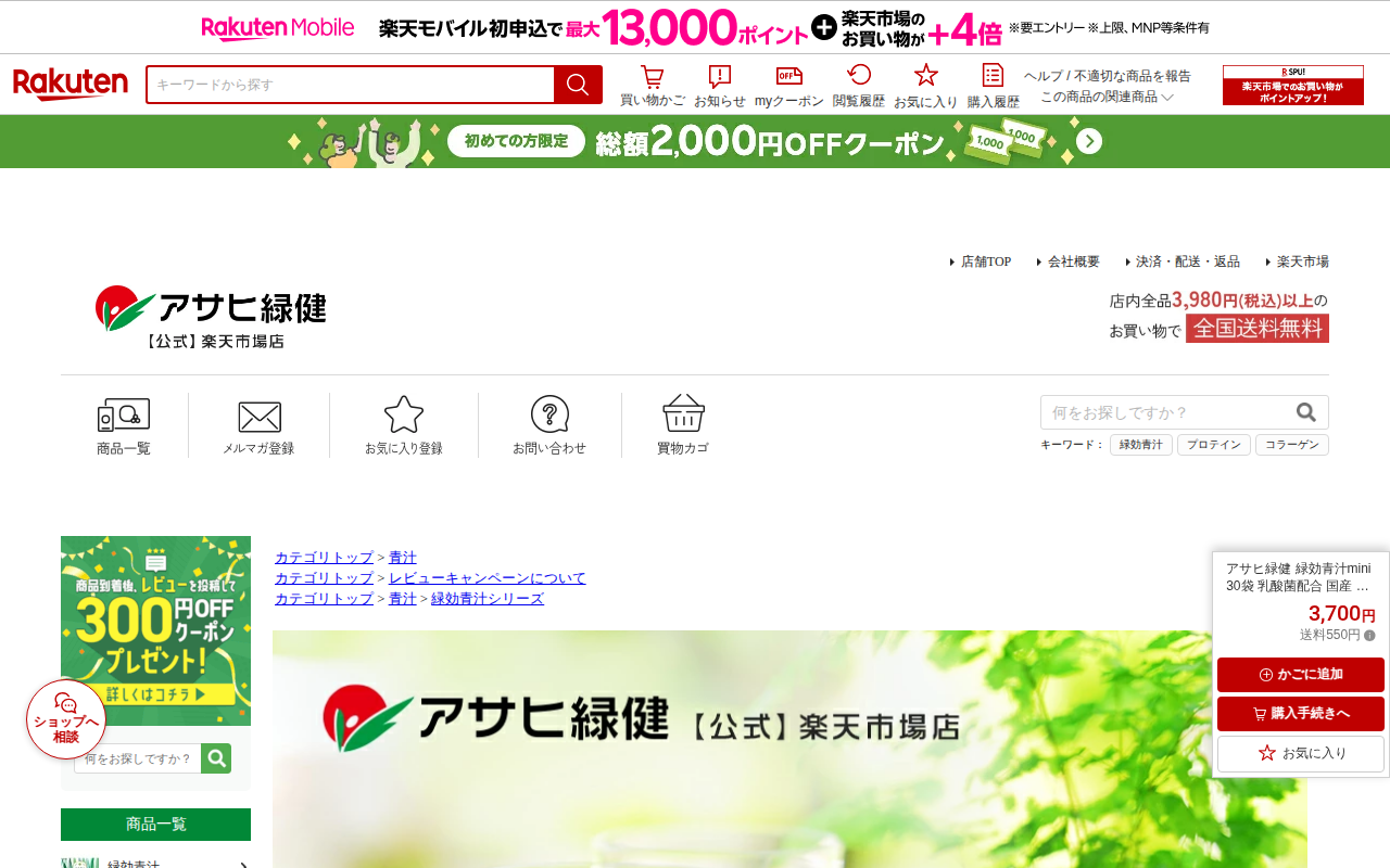 【楽天市場】アサヒ緑健 緑効青汁mini 30袋 乳酸菌配合 国産 大麦若葉 オリゴ糖 食物繊維 3.5g×30袋 カルシウム 青汁 抹茶風味 おいしい 有機栽培 農薬不使用 粉末 あおじる こども 青 汁 ギフト 大麦若葉青汁 抹茶風味青汁 飲みやすい青汁 30包入り 乳酸菌入り青汁 お試し 母の日:アサヒ緑健 【公式】楽天市場店