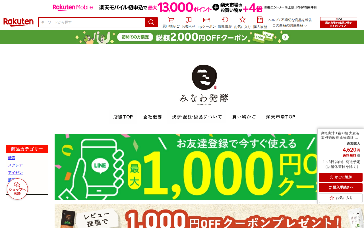 このページは、みなわ発酵が販売する機能性表示食品「爽軽青汁」の商品ページです。1箱30包入りで、大麦若葉を使用した国産青汁です。葛の花由来イソフラボンと有胞子性乳酸菌を含み、肥満気味な方の体重や脂肪減少、便通改善をサポー...