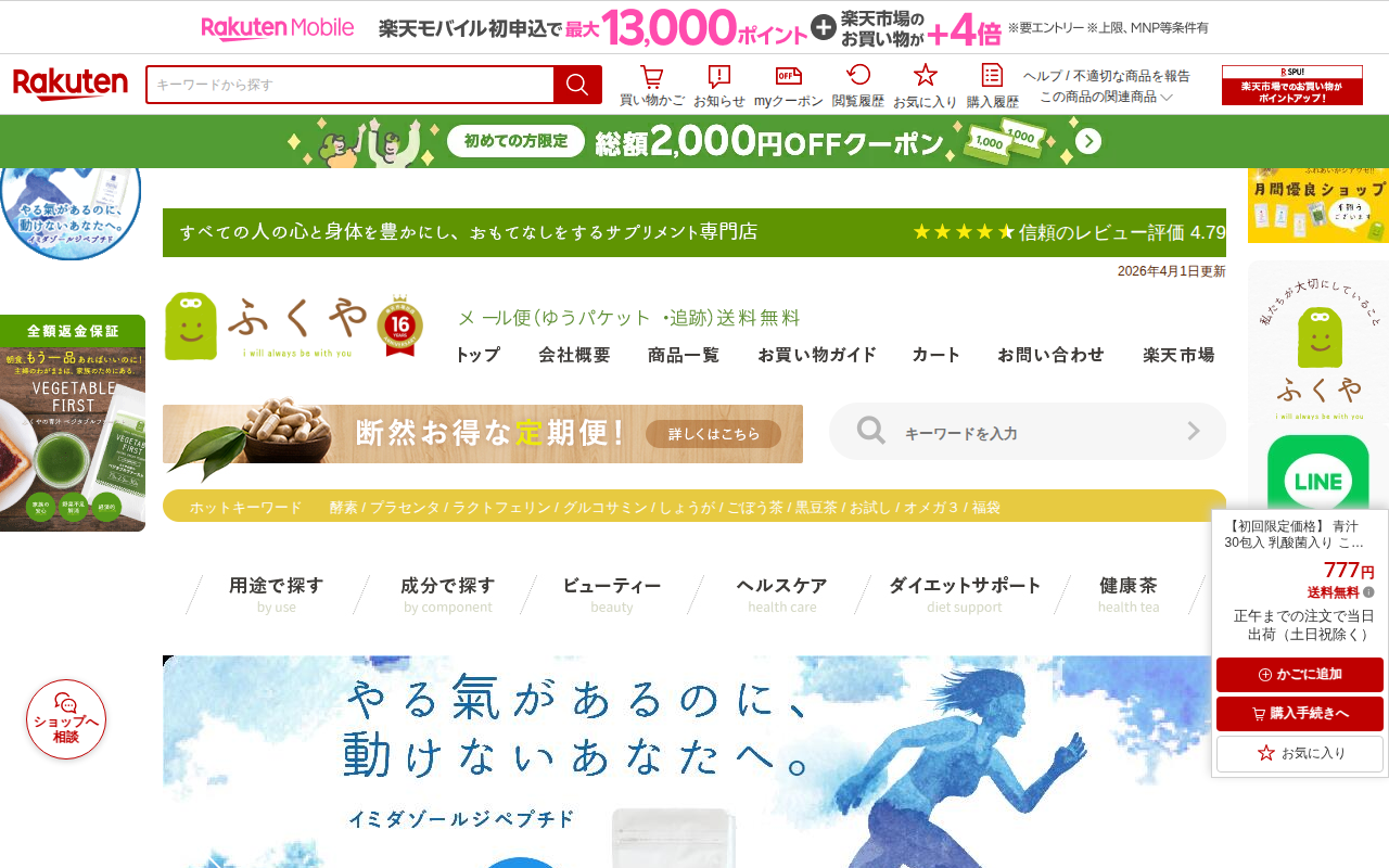 このページは、楽天市場で販売されている初回限定価格777円の青汁商品を紹介しています。30包入りで、大麦若葉と桑の葉を使用し、乳酸菌100億個、酵素、スピルリナなどを配合した粉末青汁です。緑茶味で飲みやすく、個包装で携帯...