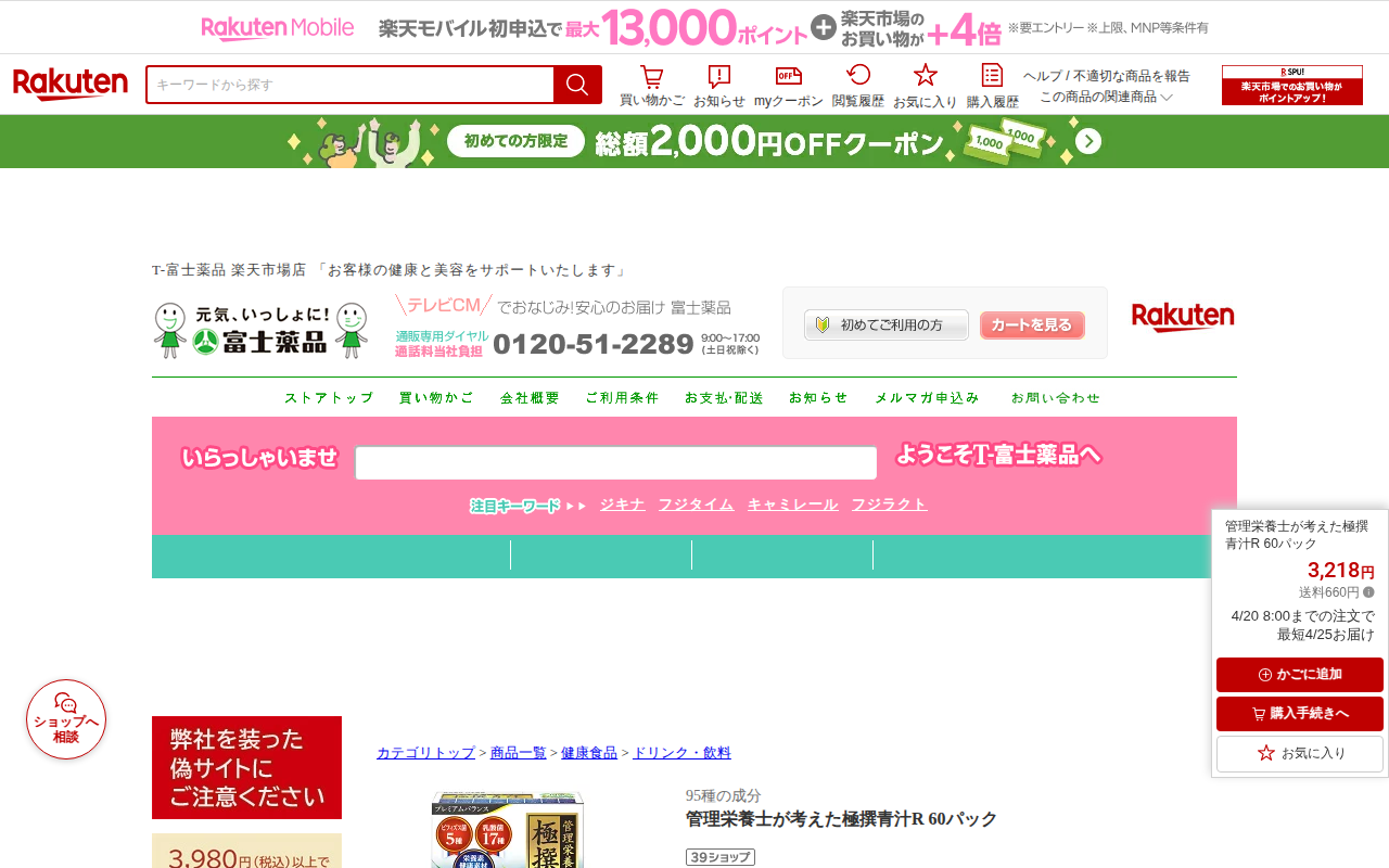 【楽天市場】管理栄養士が考えた極撰青汁R 60パック:T-富士薬品