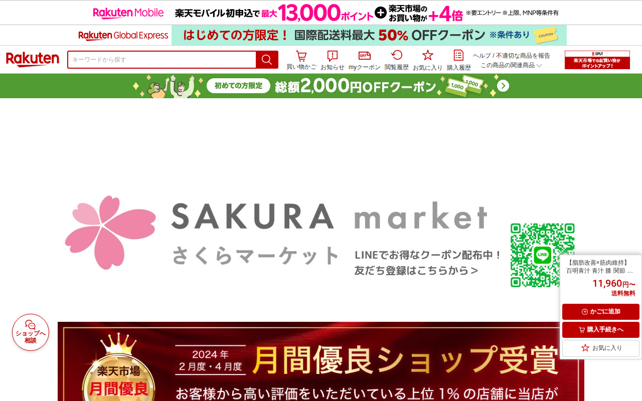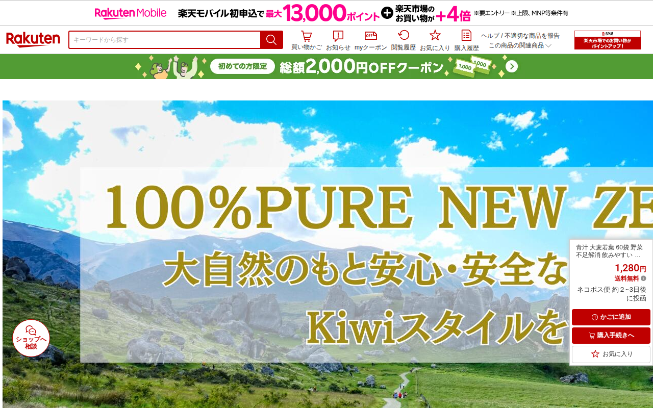 このページは、楽天市場で販売されている「健翔 青汁のススメPREMIUM」の商品ページです。国産九州産の大麦若葉、ケール、明日葉を使用した青汁で、契約農家による無農薬栽培が特徴です。ビタミンE、カルシウム、鉄分など栄養バ...
