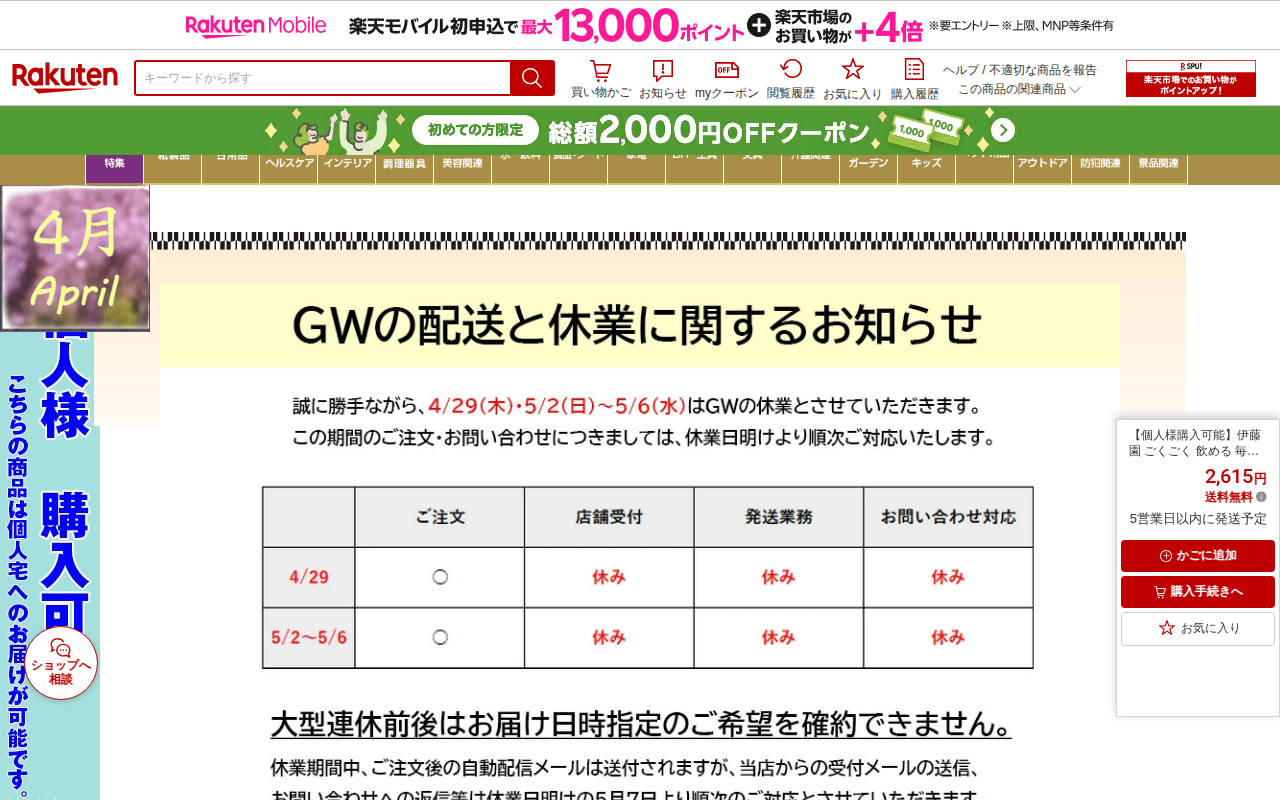 【楽天市場】エラー