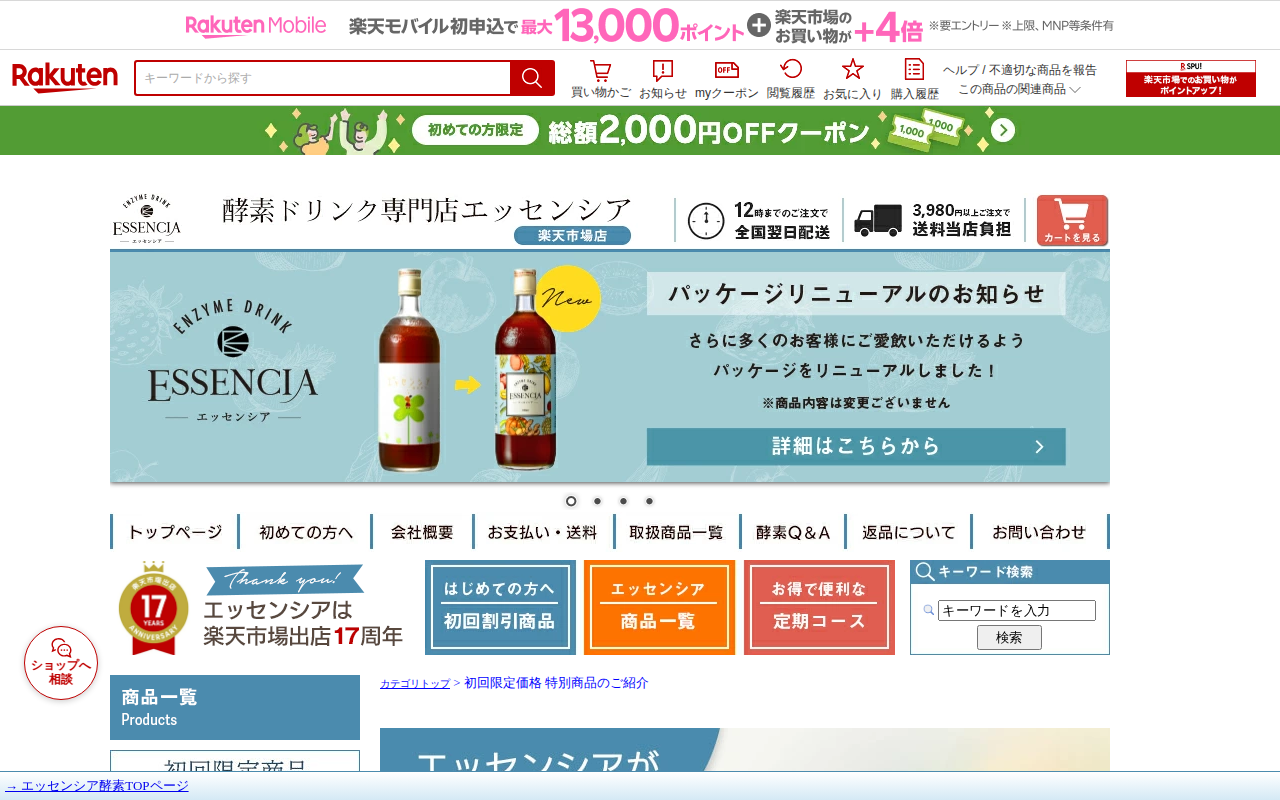 【楽天市場】初回限定価格 特別商品のご紹介:酵素ドリンク専門店 エッセンシア