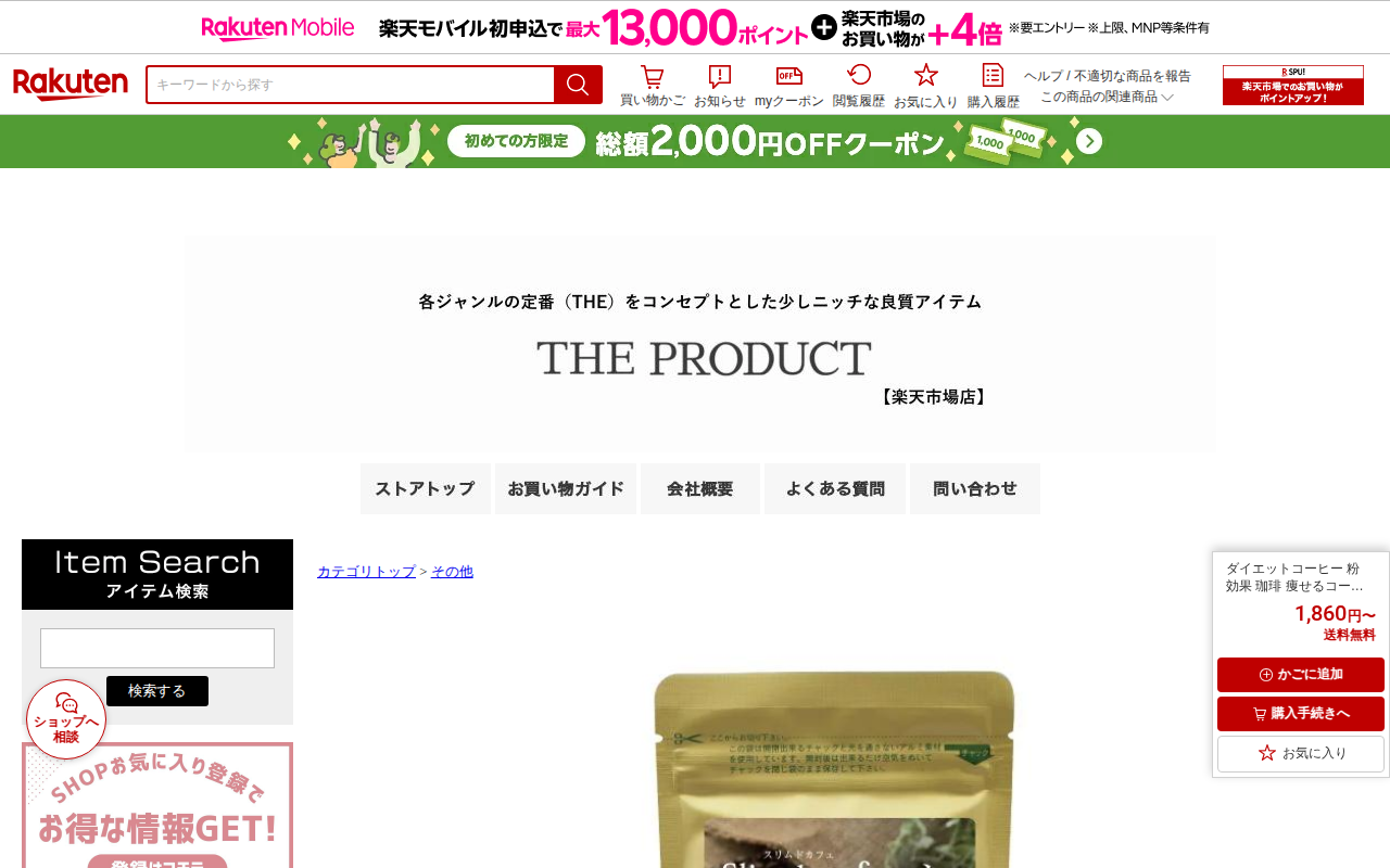 【楽天市場】ダイエットコーヒー 粉 効果 珈琲 痩せるコーヒー 置き換え食品 ドリンク スリムドカフェ すらりっと珈琲 ダイエットドリンク 口コミ 高評価 国産 すらりっとコーヒー 100g ダイエット飲料 脂肪燃焼 送料無料:THE PRODUCT