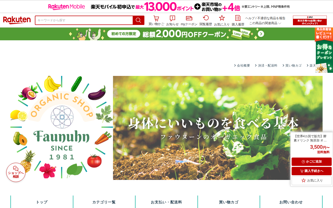 このページは、楽天市場で販売されている「ハーモニーライフ酵素 極み」という無添加オーガニック酵素ドリンクの商品情報を掲載しています。有機JAS認可取得済みの29種類のオーガニック原材料を使用し、残留農薬ゼロを謳っており、...
