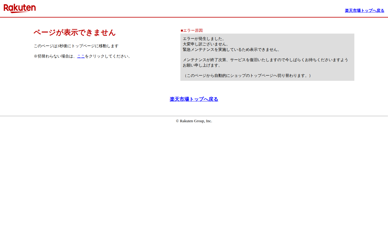 【楽天市場】エラー