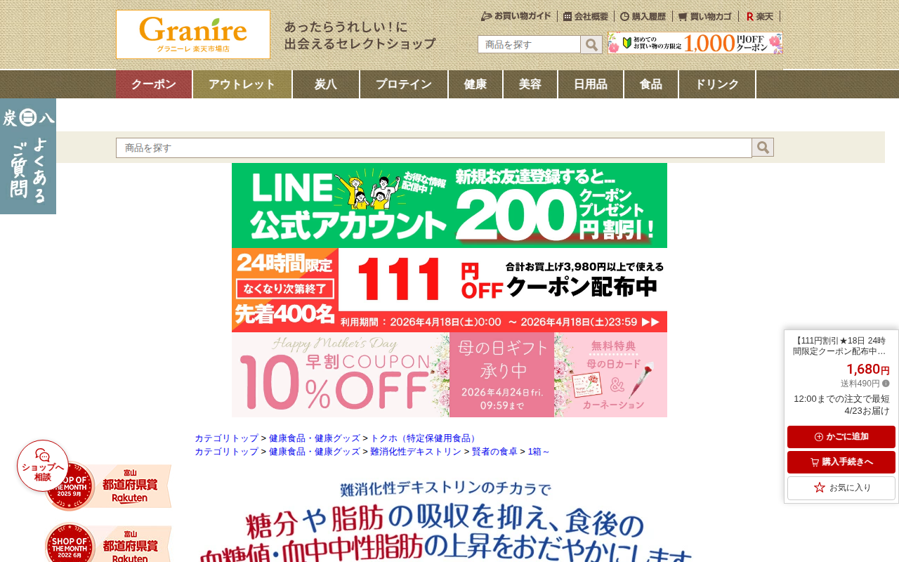 【楽天市場】【111円割引★18日 24時間限定クーポン配布中】【1箱】大塚製薬 賢者の食卓(6g×30包) 難消化性デキストリン トクホ 特保 脂肪 血糖値 特定保健用食品[60]:グラニーレ 楽天市場店