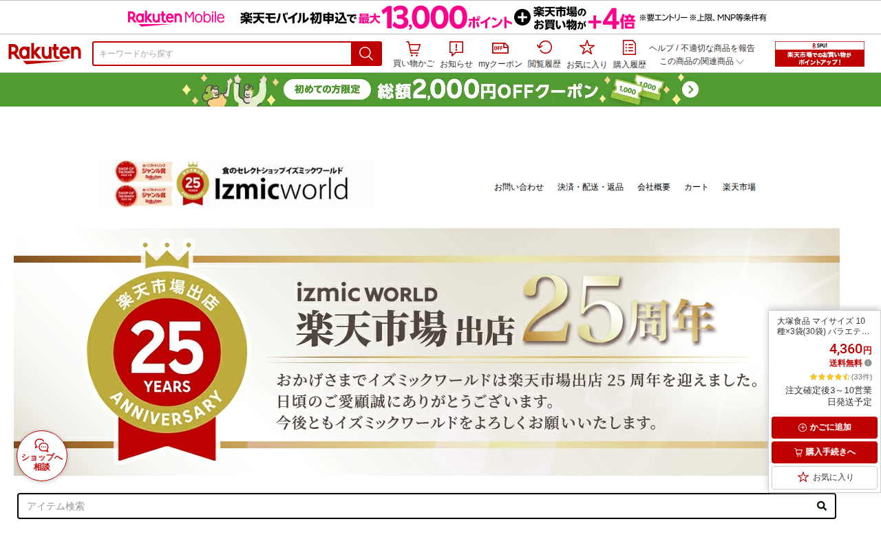 このページは、楽天市場で販売されている大塚食品の「マイサイズ」10種×3袋(30袋)のバラエティアソートセットの商品紹介ページです。価格は4,360円で送料無料。レンジで簡単に調理できる低カロリー(100kcal)のレト...