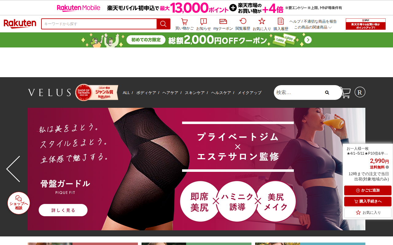 このページは、楽天市場で販売されているVELUS製のまつげ美容液の商品ページです。大容量9.5mlで、ヒト幹細胞培養液やキャピキシルなど9大高級ケア成分を配合しており、まつげ・眉毛ケア、マスカラ下地など7つの機能を備えて...