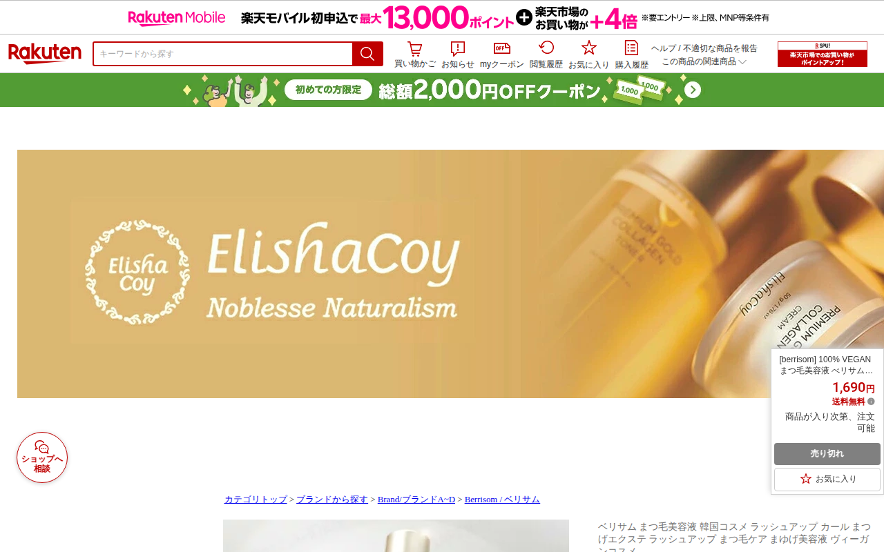 このページは、楽天市場で販売されているベリサム(Berrisom)の100%ヴィーガンまつ毛美容液「リアルミー ビオテノール ラッシュアップアンプル」(9ml)の商品ページです。価格は1,690円で送料無料。低刺激のヴィ...