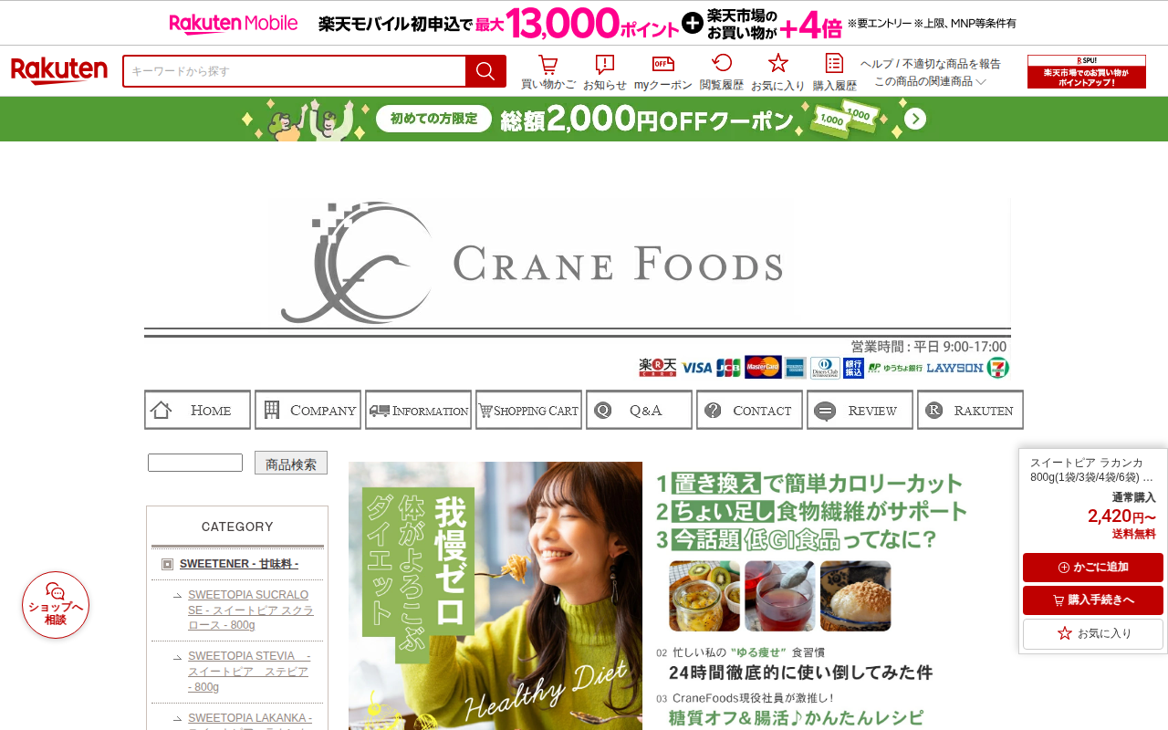 このページは、楽天市場で販売されているスイートピア ラカンカ 800gの商品紹介ページです。羅漢果とエリスリトールを配合した100%植物由来のゼロカロリー甘味料で、砂糖と同じ甘さながらカロリーゼロ、糖類ゼロです。ダイエッ...