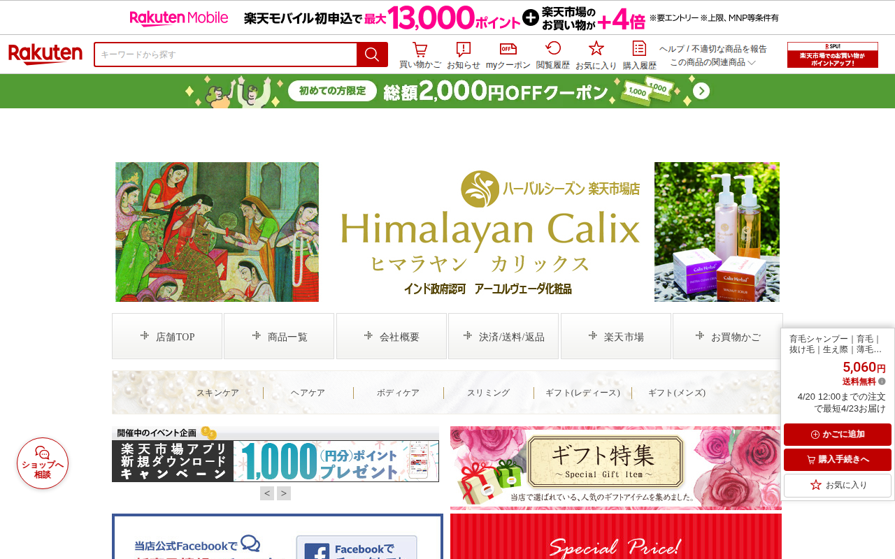 このページは、楽天市場で販売されているアムラヘアクレンザーというスカルプシャンプーの商品ページです。200ml、送料無料で5,060円。インドのアーユルヴェーダに基づいた化粧品で、シカカイやアムラ、バジルなどのハーブを配...