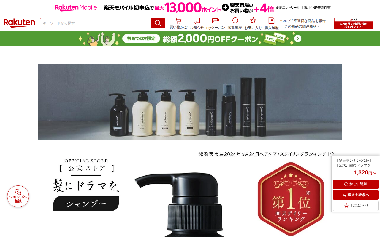 このページは、楽天市場で販売されている「髪にドラマを つるりんちょBOOSTERクレンジングシャンプー」の商品紹介ページです。楽天ランキング1位の商品で、日々蓄積する不純物を除去して素髪に戻すブースターシャンプーです。8...