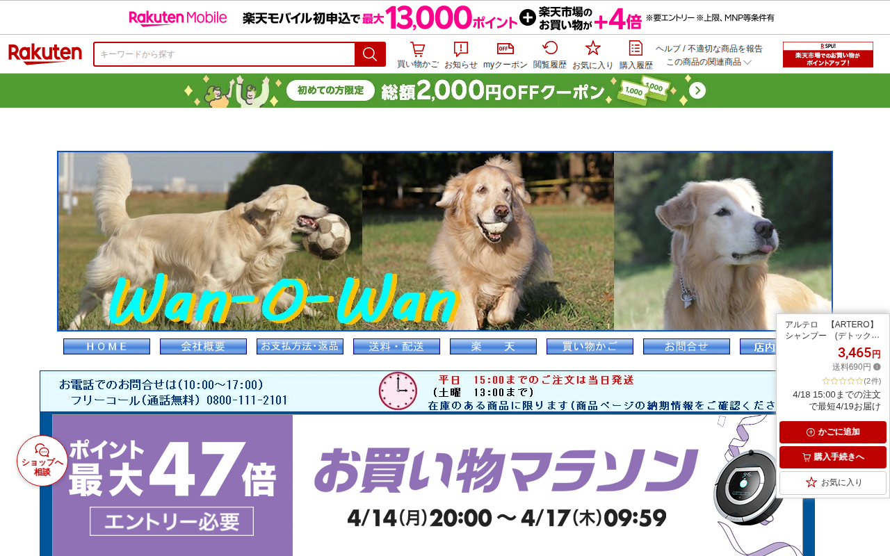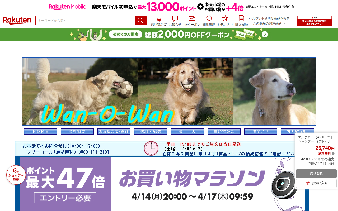 このページは、楽天市場のWan-O-Wan店舗で販売されているアルテロ(ARTERO)のデトックスシャンプー5L商品の紹介ページです。木炭パウダーを配合したクレンジングシャンプーで、犬の汚れやニオイをしっかり除去し、毛を...